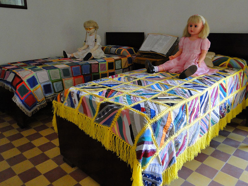 Sobre las camas gemelas permanecen el par de muñecas grandes con las cuales jugaron las hermanas Gil, las mismas que confeccionaron los tendidos en crochet y retazos.